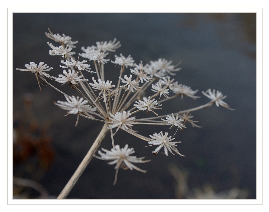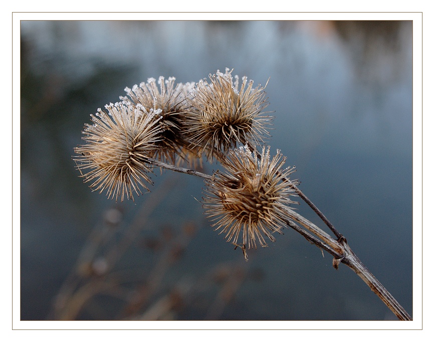 J’aime beaucoup la première photo, le gel sur ces petites graines étoilées…