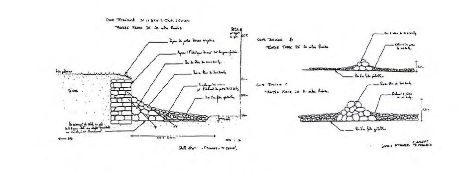 – parement de la digue reconstruit à l’identique, en pierre sèche (avec joints en colle-ciment).