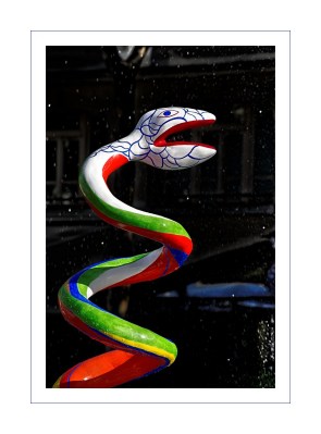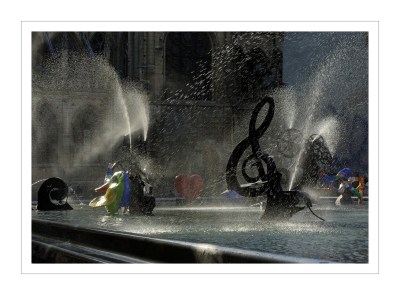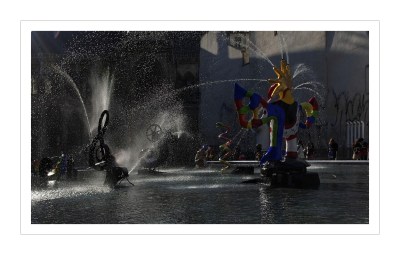 Réalisée dans bassin d’acier inoxydable de 580 m², entièrement démontable , est posé sur le toit de l’IRCAM, les machines animées de Tinguely évoquent les œuvres de Stravinsky (l’Oiseau de Feu, le sacre du Printemps Petrouchka…) et les sculptures colorées de Nikki de Saint-Phalle dansent inlassablement un ballet à coup de jet d’eau, et dont le fonctionnement est synchronisé avec le mouvement des machines.