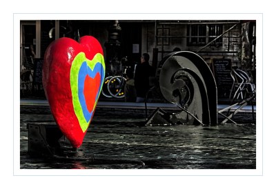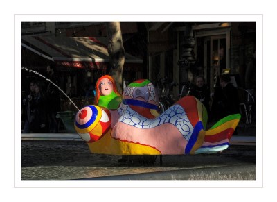 A proximité du Centre Beaubourg, mais ausside l’église Saint-Merri, cette œuvre, d’une modernité incontestable apporte une touche d’animation et de gaieté dans un décor imposant et austère ; elle apporte une « touche » poétique, farfelue et ironique dans son « tête à tête » avec l’environnement.