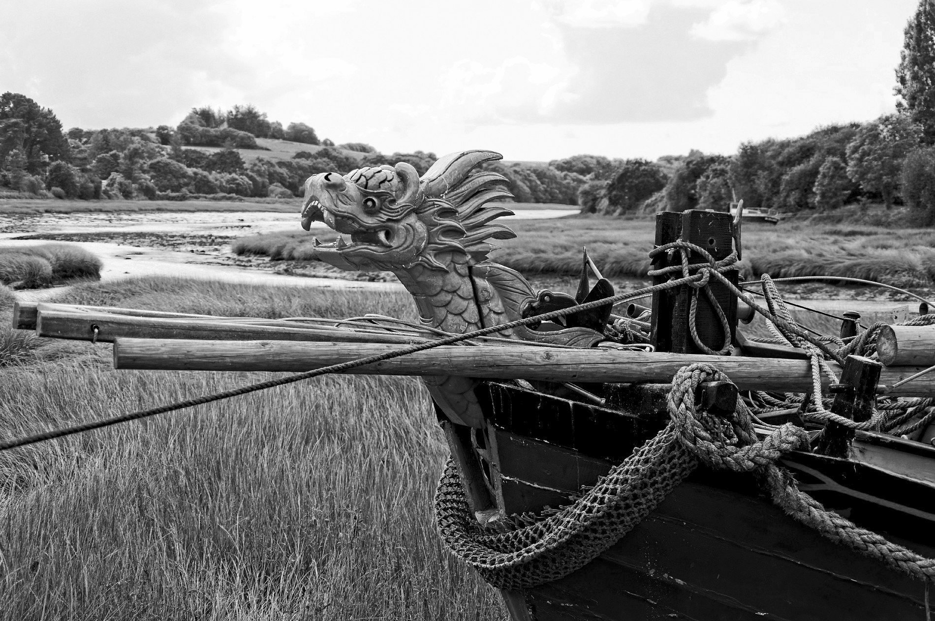 jonque dragon, jonque vietnamienne, bretagne, Logonna Daoulas, finistère, noir et blanc