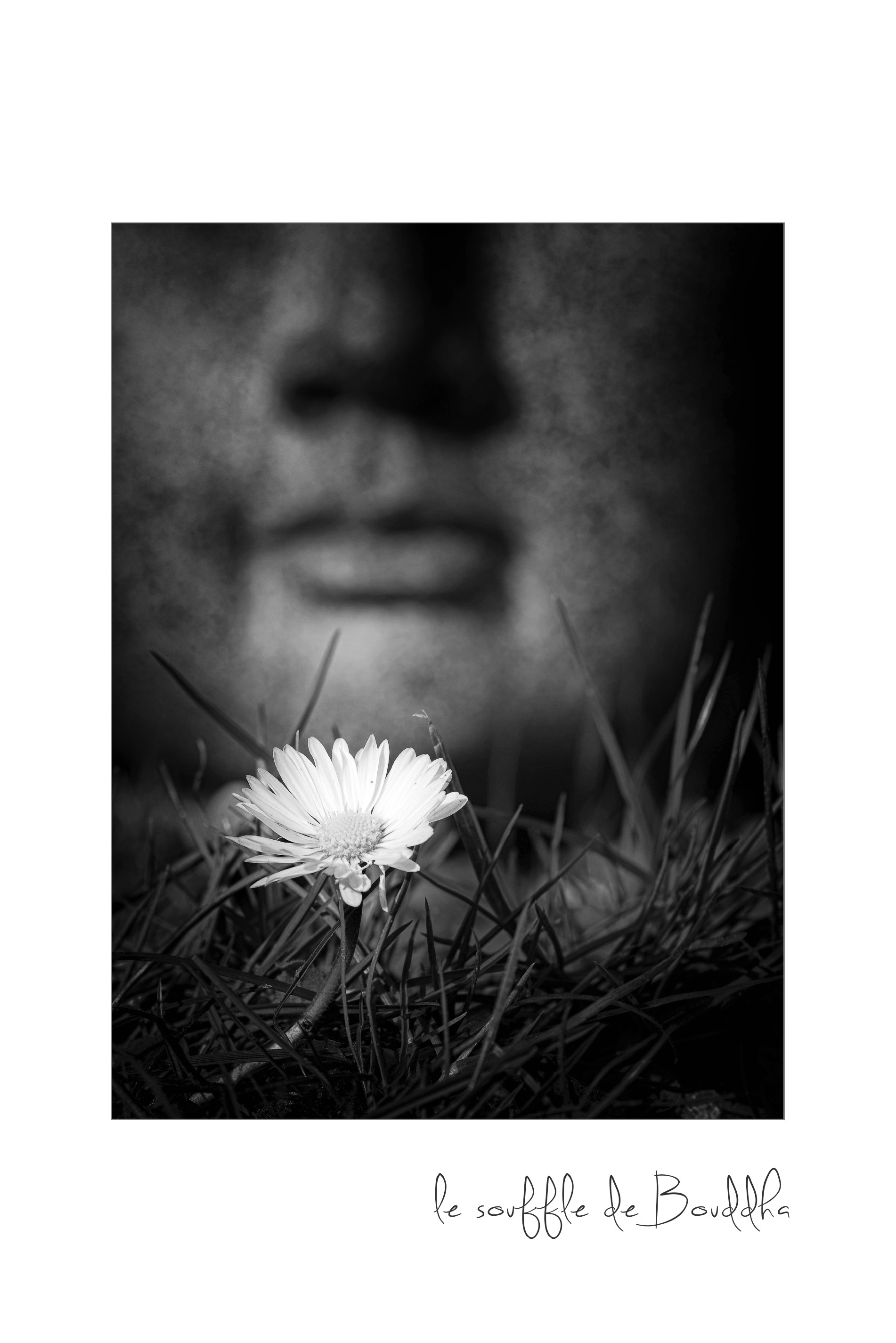 Bouddha, fleur, zénitude, pâquerette, noir et blanc