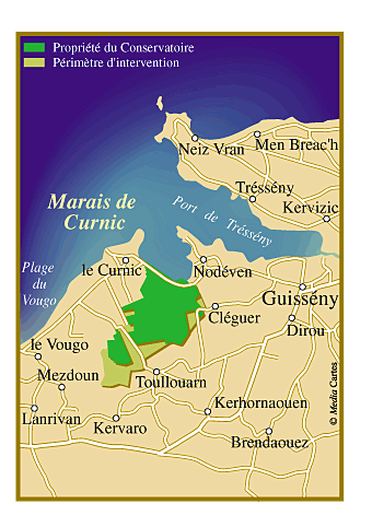 Entre la basse plate-forme côtière du Pays Pagan et les falaises abruptes du plateau du Léon, le marais de Curnic déploie prairies, landes humides, saulaies, étangs et roselières.