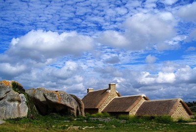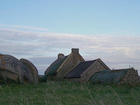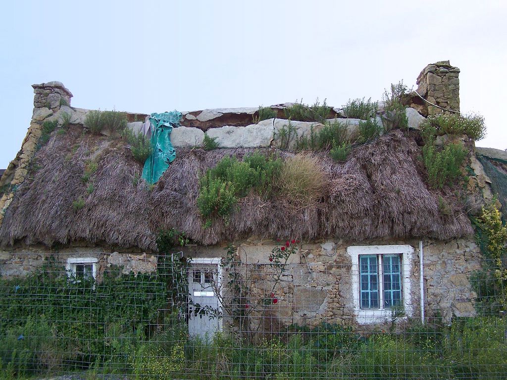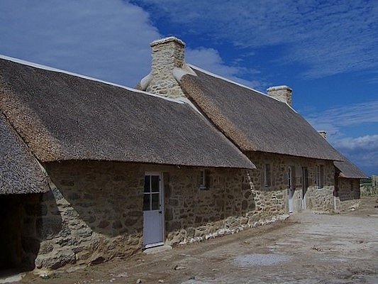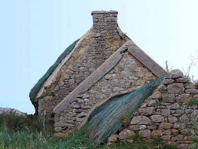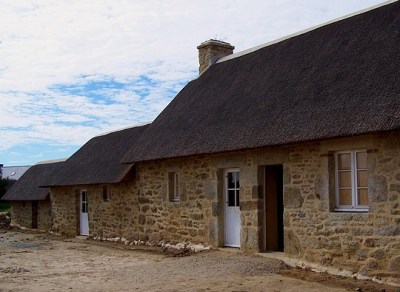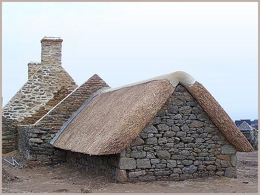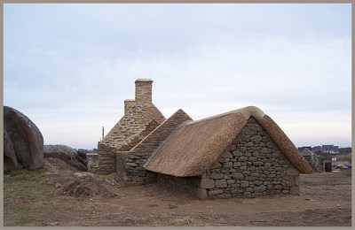 Avancement des travaux sur chaumière du village de pêcheur à Ménéham, fin décembre 2007.