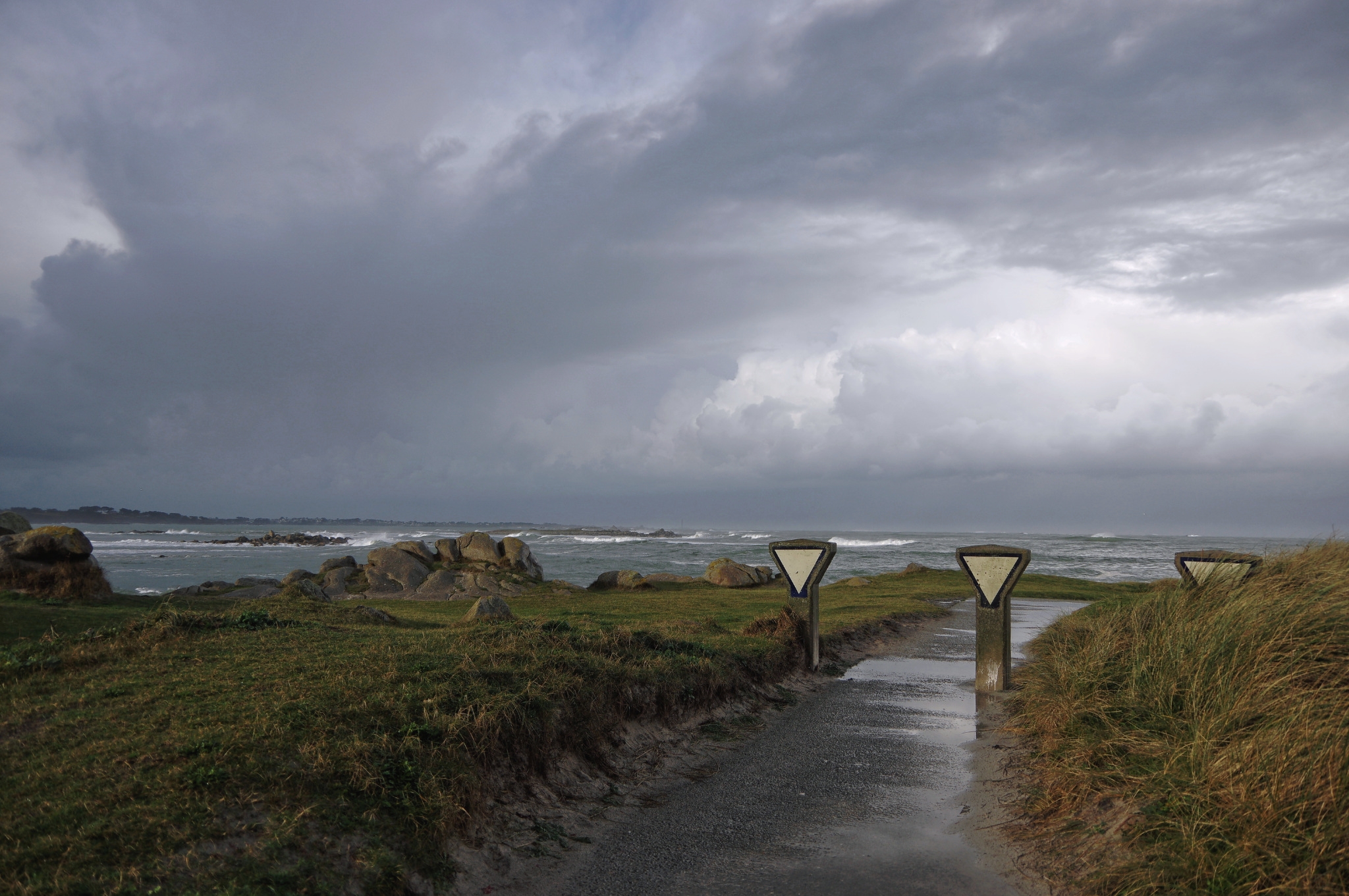 Le lendemain, les éléments sont moins déchaînés 😕 j’en profite pour une sortie sur la jetée du port du Curnic et sur la dune au dessus la plage du Vougot 😛